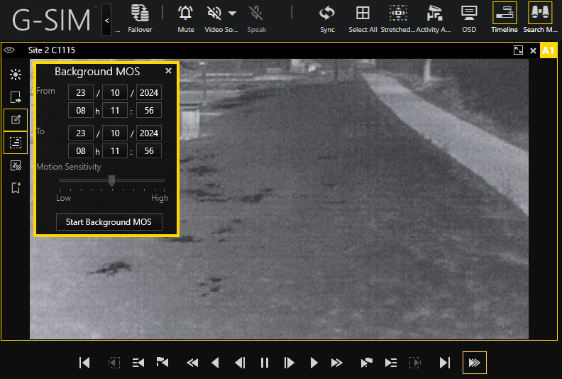 - Open the Background MOS menu, select Start and End date/time, and set Motion Sensitivity.